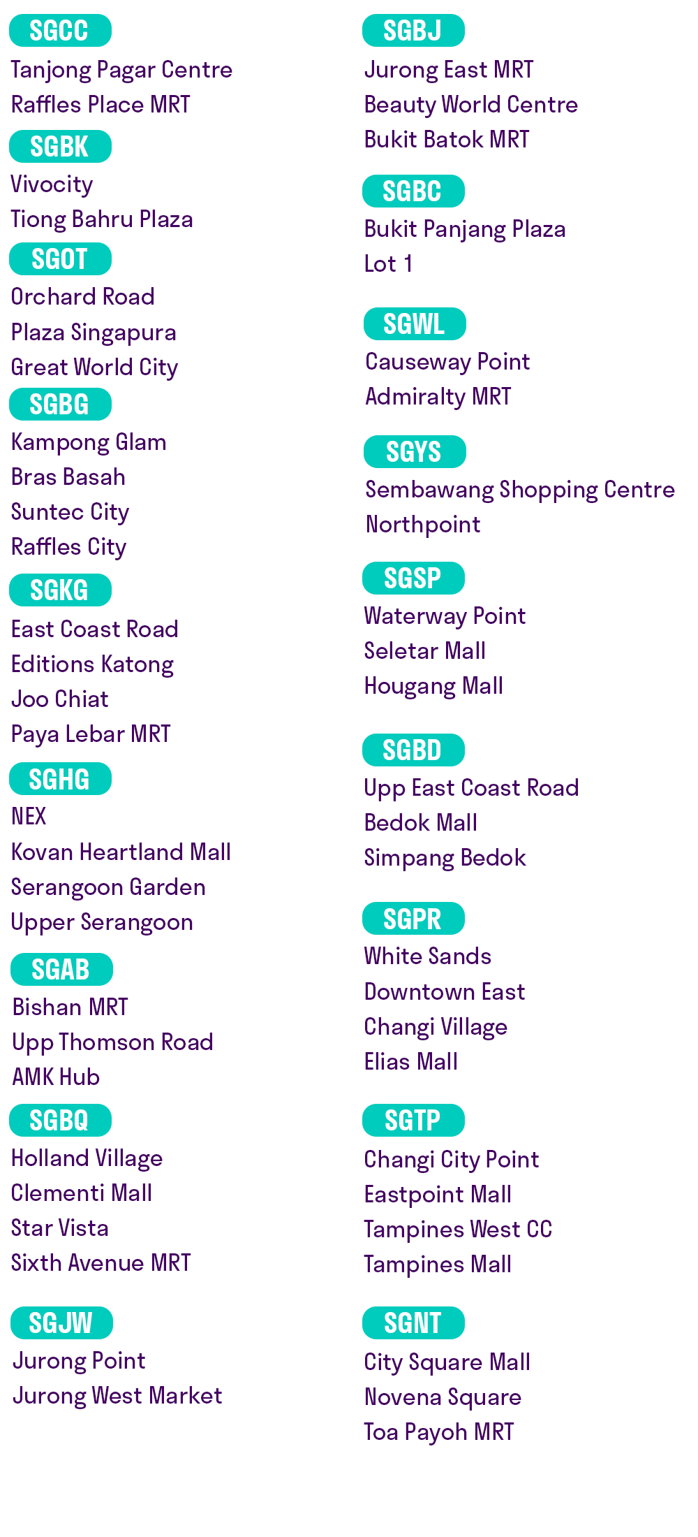 Toa Payoh MRTBus Interchange. Bedok Bus Interchange eHub 207 New Upper Changi Road 01-00 Singapore 460207. AXS LOBBYSULTAN LINK - STATION 2.